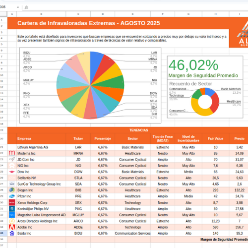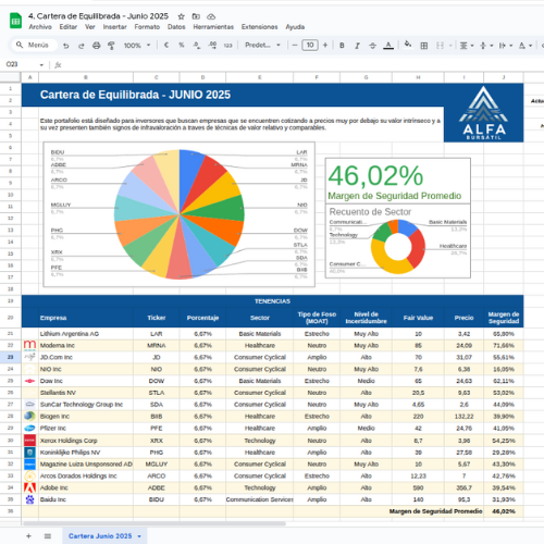 Es una cartera más especulativa, con mayores riesgos pero alto potencial de retorno si se produce la convergencia al valor intrínseco. Requiere seguimiento más frecuente.