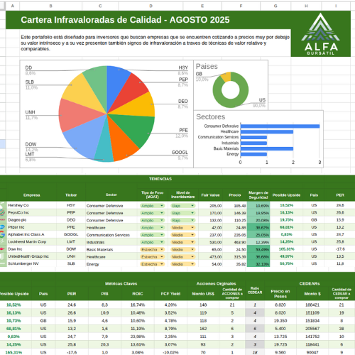 Esta cartera incluye empresas con buenos fundamentales (rentabilidad, márgenes, ventaja competitiva) pero castigadas por el mercado. Es una cartera “value” clásica.