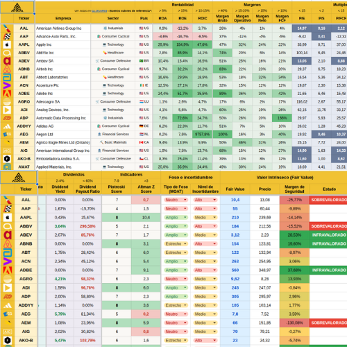 Es una herramienta clave para el análisis comparativo y la detección de oportunidades infravaloradas. Se actualiza automáticamente.