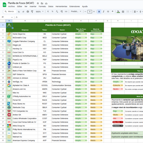 Esta planilla los CEDEARs que cotizan en Argentina y muestra si tienen una ventaja competitiva duradera por sobre otros jugadores de su industria.